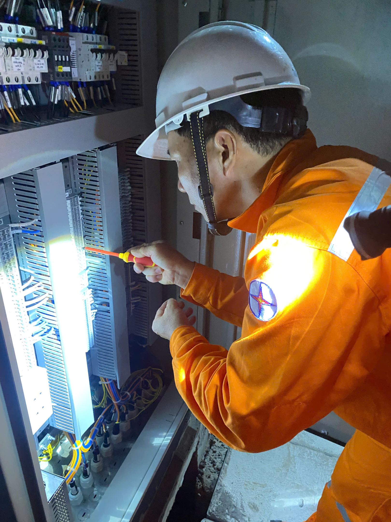 Đơn vị thi công thực hiện công tác tại lộ ra 22kV dự án “Trạm 110kV Ascendas (Lắp MBA T2 63MVA), tỉnh Bình Dương”, đóng điện ngày 27/4.