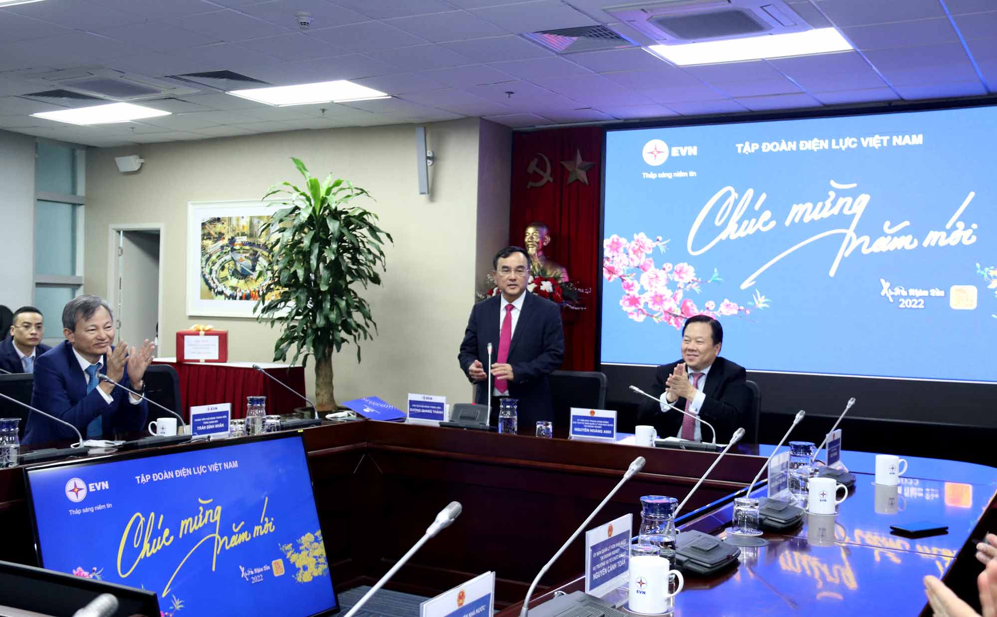 Phát biểu tại buổi làm việc, ông Dương Quang Thành – Chủ tịch HĐTV EVN cam kết, tập đoàn sẽ nỗ lực, chủ động, sẵn sàng các giải pháp để vượt qua những khó khăn, thách thức, đảm bảo cung cấp điện phục vụ phát triển kinh tế - xã hội và đời sống nhân dân trong năm 2022.