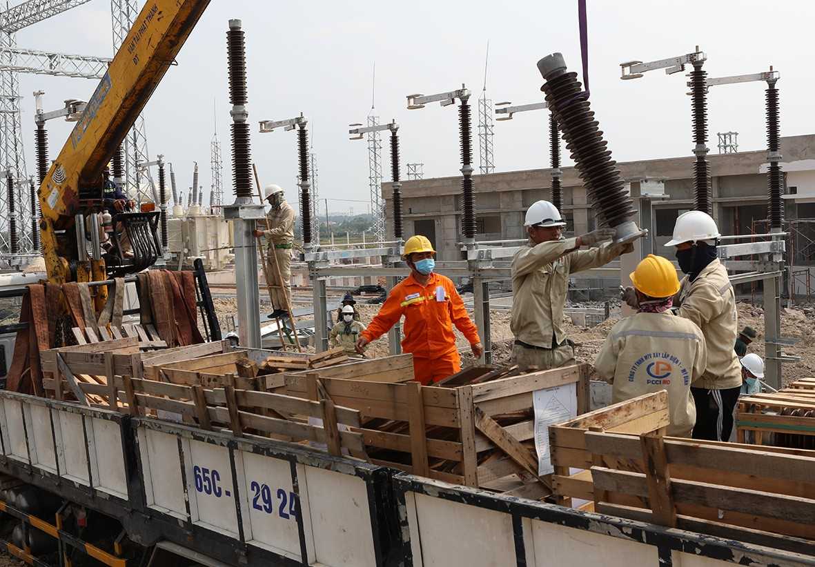 Lắp đặt thiết bị trạm biến áp 220kV An Phước. Ảnh: Ngọc Hà/Icon.com.vn