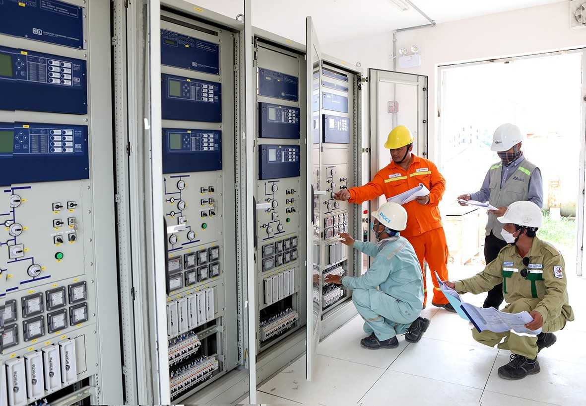 Các đơn vị thi công thí nghiệm thiết bị trạm biến áp 500kV Long Thành để chuẩn bị nghiệm thu, đóng điện. Ảnh: Ngọc Hà/Icon.com.vn